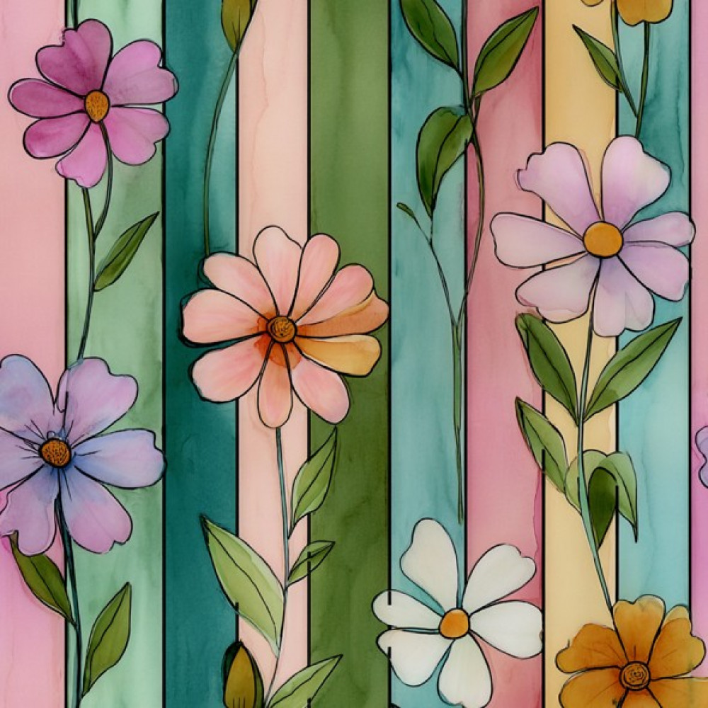INFL26 - TRICOL. VIV FLORES EM LISTRAS - 100% ALGODÃO - A2767/001D - E15983
