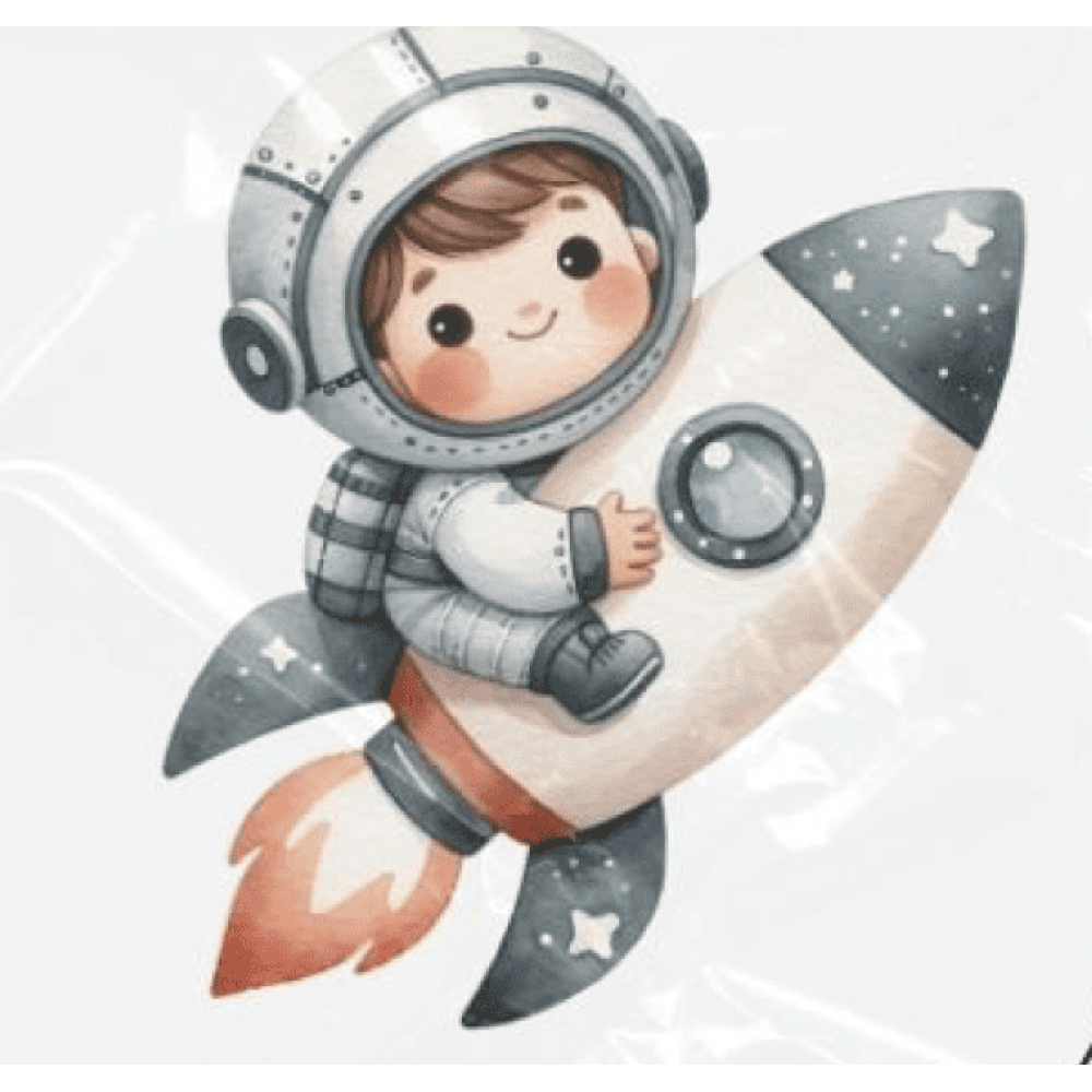 ESTAMPA FÁCIL - 9CM X 9CM - ASTRONAUTA NO FOGUETE