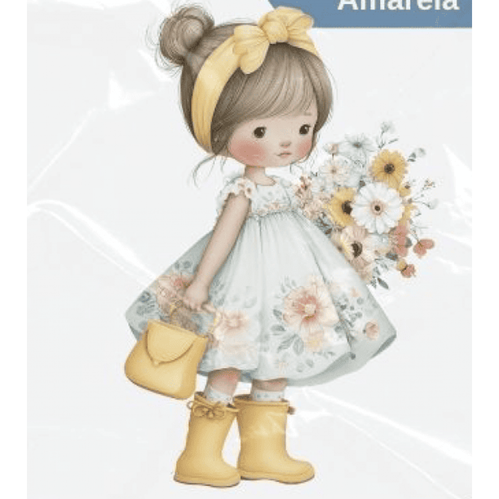ESTAMPA FÁCIL - 9CM X 9CM - MENINA COM BOLSA AMARELA